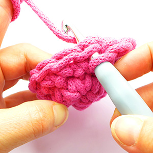 Pozn. Všechny sloupky jsou háčkované jako obvykle, jediný rozdíl je v tom, kam vložíte háček.